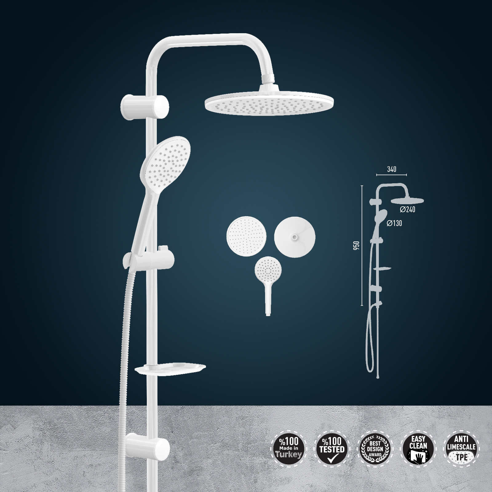 Rosan Quadro White baterija sa usponskim i ručnim tušem