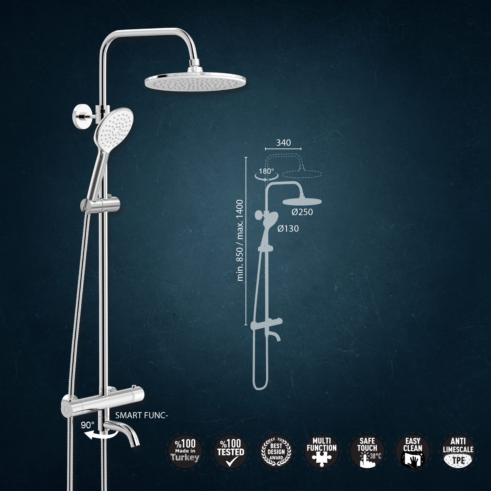 Valtemo Luxo-S usponski tuš sa termostatskim mešačem